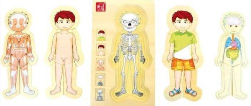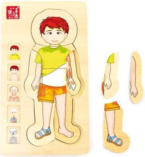 Jak vlastně vypadá Tim zevnitř? Už děti mateřských škol se zajímají o tělo a jeho funkci. Kostra, svaly, krevní oběh, vnitřní orgány – postupně se úroveň po úrovni sestavuje lidské tělo. Toto puzzle z lepeného dřeva přináší nejen nové poznatky, ale trénuje současně motorické dovednosti. Hlavní vlastnosti: lidské tělo zobrazeno ve čtyřech vrstvách získávání znalostí a vědomostí trénuje motoriku