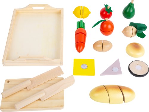 Chutně vypadající snídaně ze dřeva. S přiloženými noži se snídaně dá rozdělit na jednotlivé součásti a znovu sestavit pomocí suchých zipů. Hlavní vlastnosti: rozvíjí sociální dovednosti, obratnost, představivost a kreativituideální tvar pro malé dětské ruce