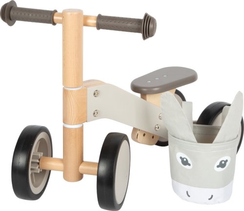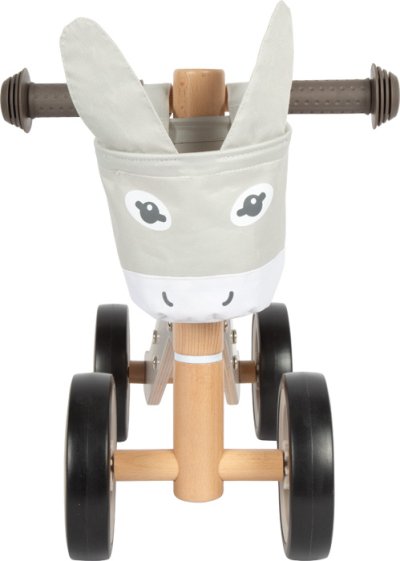 Dřevěné odrážedlo v designu oslíka, které se stane nepostradatelným pomocníkem Vašeho dítka doma i při procházkách venku. Proč namáhat nožičky, když může sednout a frčet?! Dřevěná robustní konstrukce je nejen příjemná na dotek, ale i nesmírně stabilní. Pogumovaná kola zajistí, že vaše dítě může prozkoumávat svět tiše a bezpečně, aniž by rušilo okolí. Gumové rukojeti nabídnou malým průzkumníkům pevný úchop a kontrolu nad svým vozítkem. Sedátko je nastavitelné od 22 do 25 cm, může se tak přizpůsobit výšce dítěte. Součástí je také odepínatelná taška na řídítkách v designu oslíka, která může sloužit jako praktický úložný prostor pro láhev s pitím či plyšového kamaráda. Zadní kola jsou blízko sebe a nabízejí tak dostatek prostoru pro nohy při odrazu. Hlavní vlastnosti: zajímavý design s funkčními prvkynastavitelné sedátko na výšku a vzdálenost od řídítekodnímatelná taška v designu osladřevěná robustní konstrukcepogumovaná kolagumové rukojetirozvíjí pohybové dovednosti a rovnováhu dětívhodné pro děti od 12 měsíců