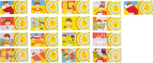 Edukativní hra obsahující 17 puzzle dvojiček. Pravý dílek znázorňuje hodiny s odlišným časem, levý dílek pak činnost, která je v tento čas obvykle provozována. Děti si tak spojí obvyklou činnost s určitou hodinou. Složením má dítě okamžitou kontrolu správnosti a tím si snadněji dvojice zafixuje do paměti.