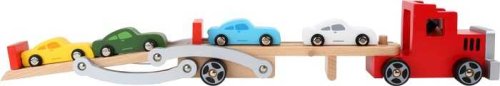 Pozor, zde se nakládají břemena! Chcete-li převézt nové modely aut z místa A na místo B, budete určitě potřebovat tento auto-přepravník. Naložit lze čtyři auta. Dřevěná auta mohou pohodlně vyjet na nákladní rampu. Zvednutá plocha opatřena závorou zabrání nechtěnému couvnutí aut. Včetně čtyř dřevěných aut v designu sportovních vozů. Přívěs se připojí k tahači a vše je připraveno na dlouhou a bezpečnou cestu. Ideální pro fanoušky aut a skvělý doplněk do vozového parku autíček v dětském pokoji. Hlavní vlastnosti: vyrobeno z robustního dřeva v pestrobarevném provedení pohyblivá horní plošina pro snadné nakládání a vykládání včetně čtyř autíček