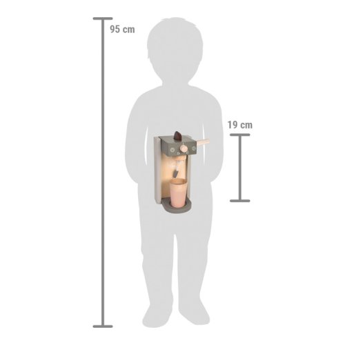 Pro malé baristy a baristky! Tato kompletní dřevěná sada se skládá z dětského kávovaru s 2 kávovými kapslemi, 2 šálky na kávu s sebou a 2 kopečky mléčné pěny. Kávovar nabízí realistickou hru, kávové kapsle zapadnou do přístroje, hotovou kávu můžete nazdobit magnetickou mléčnou pěnou. Kávovar má nenápadné barvy a mnoho viditelného dřeva. Kávové kapsle do kávovaru zapadnou pomocí boční páčky, kuželovitý tvar kelímků zajistí, že kapsle spadne přímo do nich. Magnetický napěňovač vám poskytne mléko do kávy. Napěňovač je vyroben z drátku obaleného v textilu, ohýbá se do všech stran a na konci má magnet, na který můžete připevnit mléčnou pěnu. Tato sada má barevný design kompatibilní s dalšími produkty řady Tasty od small foot, například Dřevěnou kuchyňkou LE12216. Hlavní vlastnosti: moderní kávovar s 2 kapslemikelímky-to-gorealistická hra s kapslemi a napěňovačemrobustní dřevodesignově se hodí do dětského i obývacího pokojehodí se k dalším výrobkům z produktové řady Tastypři představivé hře trénuje každodenní a sociální dovednosti