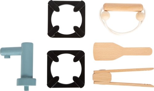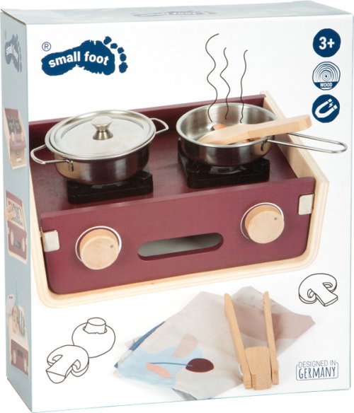 Tento mobilní sporák působí skvělým dojmem pro svou multifunkčnost. Kombinuje stolní kuchyni, kempingový vařič, gril, umyvadlo a troubu. Nabízí prostor pro nápadité hry a rozmanité herní scénáře. Moderní barvy ve spojení s přírodním ohýbaným dřevem dělají z této kuchyňky absolutní poutač. Obsahuje praktickou rukojeť (lano) pro přenášení. 2 kartonové listy obsahují potraviny/ingredience potřebné pro vaření. Součástí je také kuchyňská utěrka, pánev, hrnec s poklicí, grilovací kleště a dřevěná obracečka a samozřejmě obsahuje také oboustrannou troubu na pečení (vrch a spodek slouží buď jako vařič nebo umyvadlo). Hlavní vlastnosti: rozvíjí představivost a kreativitupodporuje komunikaci a sociální schopnosti