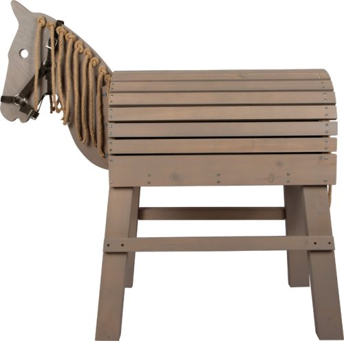 To je ale krásný koník! Děti si často přejí vlastního koně a s tímto dřevěným koníkem jim toto přání můžete splnit. Užijí si spoustu aktivní zábavy uvnitř i venku na zahradě. Koník v šedé barvě je ošetřen barvou odolnou proti povětrnostním vlivům. Hříva a ohon jsou vyrobeny z přírodního sisalu a lákají k zaplétání. Hřbet koně je navržen tak, aby se na něj vešlo skutečné sedlo a sedák. Praktický schůdek umožňuje i těm nejmenším dětem snadno na koně nasednout a rozkročené nohy poskytují bezpečnost a stabilitu. V zadní části se nachází velký úložný prostor s dvířky, který nabízí spoustu místa pro uložení uzdy a dalšího vybavení. Děti se naučí základy o koních, ponících a jízdě na nich. Se sisalovou hřívou a ohonem si děti mohou procvičit jemnou motoriku. Hlavní vlastnosti: aktivní zábava uvnitř i venkuhříva a ocas ze sisalustabilní a bezpečnévhodné pro sedák a skutečné sedlo.prvotřídní materiál odolný povětrnostním vlivůms úložným prostoremintegrovaný schůdek pro snadné nasedánívčetně uzdy