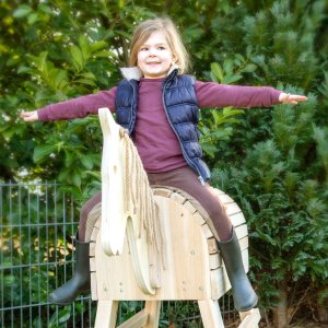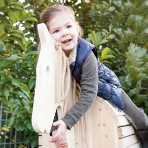 Malí i větší jezdci se mohou hravou formou seznámit se základy péče i jezdectví. Hříva a ocas ze sisalu vybízí děti k úpravě, zaplétání a zkrášlování. Díky zabudovanému stupínku bude nasedání hračka! Šikmé koníkovy nohy slibují větší stabilitu a bezpečnost. V břiše má kůň velký úložný prostor! Jako dělaný na uložení kartáče na hřebelcování či ohlávky. Ideální na zahradu nebo do dětského pokoje! Produkt je neošetřený – lze natřít konzervačním lakem dle přání a potřeb majitele. Rozměr koňského hřbetu byl navržen pro velikost sedla, jenž se prodává samostatně. Hlavní vlastnosti: součástí balení ohlávkasisalový ocas a hřívaneošetřené, odolné dřevoúložný prostor v břišeseznamování s povinnostmi péče zábavnou formou