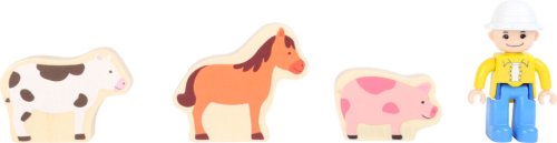 Vzrušující život na venkově! S touto farmou mohou děti zažít den plný zážitků s farmářem a jeho zvířaty. Farma ze dřeva a plastu obsahuje stodolu s dvojitými vraty, traktor s přívěsem a balíky sena, které lze přemisťovat pomocí magnetů. Sadu doplňuje kůň, kráva, prasátko a šest dílů ohrady. Budova stodoly má funkční jeřáb, kterým může farmář traktorem přivezené balíky sena uskladnit v suchu druhého patra. Posledním večerním úkolem je nakrmení zvířat, které jste dovedli z polí do stáje. Nezapomeňte zavřít bránu! Na tomto statku je opravdu živo, a tak si děti užijí spoustu rozmanité zábavy. Hlavní vlastnosti: sada obsahuje 19 dílůpodporuje představivost, obratnost a koordinaci rozvíjí motoriku dětí a komunikační dovednostihravý jednoduchý designpodporuje zvídavost a lásku k příroděvyrobeno z 100% FSC dřeva Značka a certifikát FSC® (Forest Stewardship Council) zaručuje, že dřevo, ze kterého byl produkt vyroben, nebylo vytěženo nelegálně a pochází z lesů obhospodařovaných šetrným či přírodě blízkým způsobem, ve kterém jsou dodržovány přísné environmentální a sociální požadavky. Značka FSC® na výrobku znamená, že svým nákupem pomáháte chránit lesy a podporujete šetrné, odpovědné či přírodě blízké hospodaření, díky kterému jsou naše lesy stabilnější, zdravější, mají přirozenou druhovou skladbu a lépe odolávají negativním následkům klimatických změn.