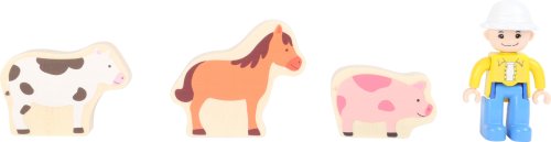 Vzrušující život na venkově! S touto farmou mohou děti zažít den plný zážitků s farmářem a jeho zvířaty. Farma ze dřeva a plastu obsahuje stodolu s dvojitými vraty, traktor s přívěsem a balíky sena, které lze přemisťovat pomocí magnetů. Sadu doplňuje kůň, kráva, prasátko a šest dílů ohrady. Budova stodoly má funkční jeřáb, kterým může farmář traktorem přivezené balíky sena uskladnit v suchu druhého patra. Posledním večerním úkolem je nakrmení zvířat, které jste dovedli z polí do stáje. Nezapomeňte zavřít bránu! Na tomto statku je opravdu živo, a tak si děti užijí spoustu rozmanité zábavy. Hlavní vlastnosti: sada obsahuje 19 dílůpodporuje představivost, obratnost a koordinaci