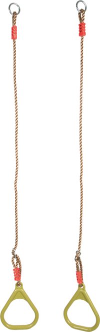 Gymnastické a houpací kruhy zabaví děti každého věku. Malí akrobaté na nich mohou změřit sílu, rovnováhu a vytrvalost. I nejnáročnější sestavy si můžou nacvičit doma na zahradě. Kruhy jsou velikostí přizpůsobené i menším dětem. Lana jsou jednoduše výškově nastavitelná a na koncích opatřena kovovými kroužky k zavěšení. Robustní plastové kruhy jsou odolné vůči povětrnostním podmínkám a jsou tak vhodné pro použití uvnitř i venku. Díky praktickým kovovým závěsným kroužkům je lze během chvilky sestavit i sundat. Hlavní vlastnosti: kruhy z odolného plastujednoduché nastavení délkynosnost 100 kgvhodné dovnitř i ven
