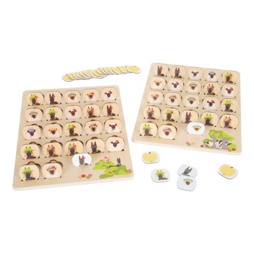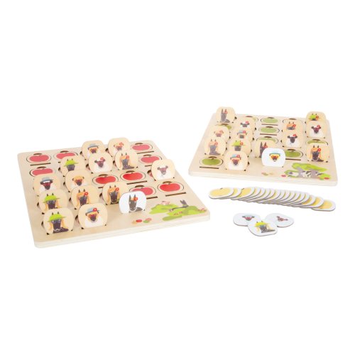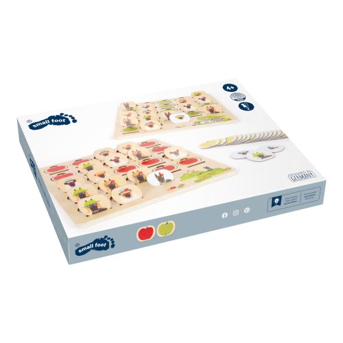 Kdo sebral jablka? S touto hrou může hádat celá rodina, budou vám stačit dobré pozorovací schopnosti, abyste co nejrychleji odhalili postavičku „4 přátelé“. Klasická hra je vyrobena z robustního dřeva a má design vhodný pro děti. V balení najdete 2 hrací desky, na které naskládáte ilustrované dílky, 22 kartonových kartiček s obrázky postaviček. 2 v 1, lze hrát také jako pexeso. Uloženo v kvalitním boxu.Kráva Olga a kohout Heinz se snaží zjistit, kdo ukradl jablka z louky, podezřelí se ale ukryli velmi dobře! Hra je vhodná pro úvod do světa podobností a rozdílností. Společenská hra má velmi jednoduchá pravidla a je vhodná pro lidi všeho věku. Pomáhá s rozvojem kombinačních dovedností a trénuje soustředěnost. Hlavní vlastnosti: populární hra s jednoduchými pravidly z robustního dřevadvě hrací desky, 22 kartonových kartiček2 v 1, lze také použít jako pexesokvalitní úložný boxpodporuje rozvoj kombinačních schopností a trénuje soustředěnostkompatibilní s ostatními hrami „4 přátelé“