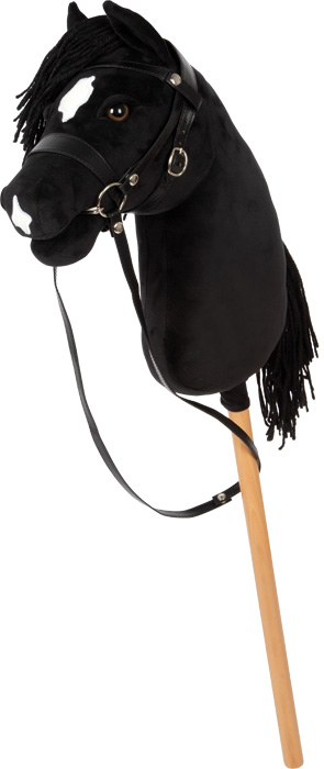Připraven na velká jezdecká dobrodružství. Tento černý koník na tyči Hobby Horse je ideálním společníkem pro malé milovníky koní, kteří si chtějí hrát s fantazií a zároveň se aktivně hýbat. Inspirován klasickým koníkem na tyči, ale moderně zpracován – představuje aktivní zábavu při hobby horsingu, ať už při projížďce po zahradě, tréninku skoků v obýváku nebo na turnaji v parku. Koník má měkkou látkovou hlavu, hustou a snadno upravitelnou hřívu, pevnou tyč z masivního dřeva. Součástí je ohlávka, uzda a vodítko, které dodávají hře maximální autentičnost. Otevřená tlama umožňuje realistické nasazení udidla, jako u skutečného koně. Dřevěnou tyč lze jednoduše odšroubovat, což usnadňuje skladování i přepravu na další hobby horsingová dobrodružství.Tento všestranný jezdecký koník si již našel místo ve světě hobby horsingových soutěží i kreativních pohybových aktivit. Jako pohybová hračka je ideálním partnerem pro moderní sport Hobby Horsing a nadchne malé i velké jezdce. Hlavní vlastnosti: podporuje aktivní hraní a rozvíjí jemnou motorikupohybová hračka pro trendy sport Hobby horsingkrátká a pevná jezdecká tyč se závitem z masivního dřevakompaktní a snadno přenosný, ideální na cesty i turnajehřívu lze libovolně česat, upravovat a zaplétats vyměnitelnou ohlávkou