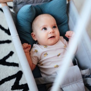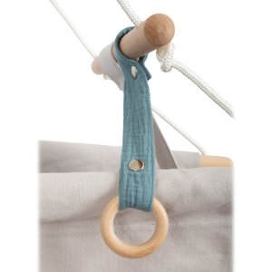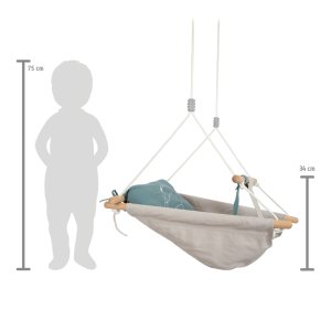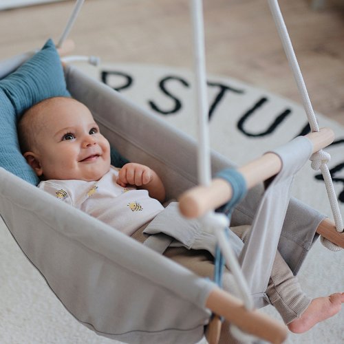 Textilní provedení houpačky nabízí mimořádný komfort díky promyšlenému designu, měkkému, odnímatelnému polštáři a 3bodovému pásu. Polštář je připevněn k houpačce pomocí poutek. Snadno udržovatelná textilie lehací plochy se optimálně přizpůsobí tvaru těla dítěte. V kouřově modré barvě, hravě doplní interiér nebo osvěží letní zahrádku. Pevná konstrukce z pečlivě opracovaného masivního dřeva, bezpečnostní popruhy a pás s rukojeťmi pomáhají zajistit vysokou bezpečnost při houpání nejmenších. Vysoký podíl masivního dřeva, přírodní materiály a trendy barva dělají z této dětské houpačky absolutní poutač. To pravé pro spokojená miminka. Hlavní vlastnosti: pohodlná dětská houpačkatkanina se přizpůsobí tělu dítětekvalitní, hladké dřevoměkký oddělitelný polštář lze zajistit poutkyv balení 3bodový pás, oddělitelný senzorický kroužekviditelné dřevo a další přírodní materiálylze připevnit i další doplňky, např. dudlíknosnost 30 kg