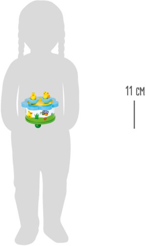Kvák, kvák! Dvě malá káčátka rozzáří dětské oči radostí, když tančí po rybníce na libozvučnou melodii. Malé kachničky bezpečně drží na vrcholu dřevěné natahovací hrací skříňky pomocí magnetů. Lze je jednoduše oddělit a děti si s nimi mohou hrát na zemi či na stole. Díky snadnému ovládání mohou tuto hrací skříňku samostatně obsluhovat i děti. Hlavní vlastnosti: snadné ovládánípodporuje představivost