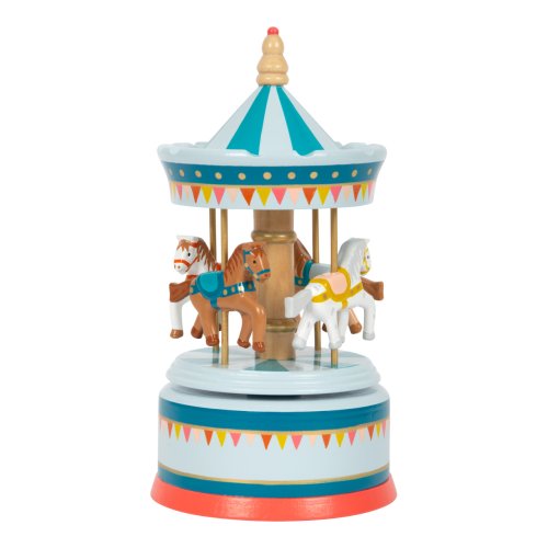 Cirkus nebo pouť? S touto hrací skříňkou můžete mít obojí! Klasický kolotoč s dřevěnými koníky se pohybuje v rytmu melodie „Pro Elišku“. Děti mohou hrací skříňku ovládat samostatně, má zaoblené hrany, které jsou perfektní pro bezpečné a jednoduché uchopení. Hračka má mnoho zlatých a barevných detailů, je viditelně dřevěná a díky kombinaci klasického designu a moderních elementů vynikne v každém pokojíčku. Hlavní vlastnosti: hrací skříňka v klasickém designumelodie „Pro Elišku“kolotoč se otáčí v rytmu hudbyzlaté a barevné detailyzaoblené hranykvalitní ilustrace, moderní a genderově neutrální barevné schéma