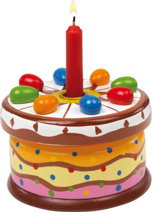 Všechno nejlepší k narozeninám... melodie, kterou hraje tato lákavě barevná hračka! Hliníkový držák obsahuje dřevěnou svíčku, kterou lze nahradit skutečnou svíčkou. Veselá melodie, která doprovází nejlepší přání na narozeninový stůl, dělá tento zvláštní den ještě příjemnější! Hlavní vlastnosti: hraje melodii "Happy Birthday"možnost vložení svíčkyveselé pestré provedení