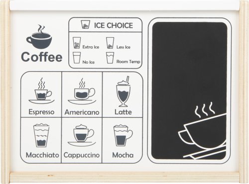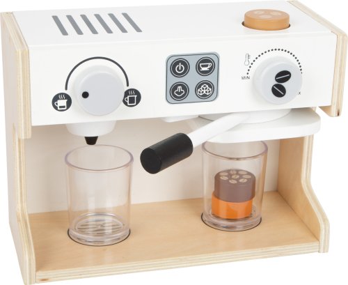 Máme tady nějaké mladé baristy a baristky? S tímto profesionálním kávovarem ze dřeva si můžete udělat perfektní kávu i ve své dětské kuchyňce. Dva ciferníky při otáčení klikají, část s kafe filtrem je otočná. Můžete si uvařit různé typy kávy. Na zadní straně je tabulka, na kterou můžete napsat svou denní nabídku. Moderní kávovar s napěňovačem, díky kterého můžete pít kávu jako rodiče! Hračka podporuje rozvoj motoriky a hraní na rolí. Hlavní vlastnosti: cvakající, otočné knoflíkytabulka na křídy pro denní nabídkupodporuje aktivní hraní rolírozvoj motoriky