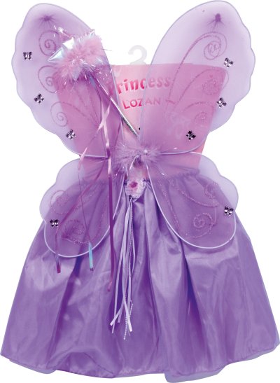 Tento fialový kostým vypadá jako z pohádky. Skládá se z tylové sukně s růžičkou na pase, kouzelné hůlky s třpytivým koncem a vílích křídel. Kouzelnou bytostí v mžiku! A hra může začít... Upozornění: kostým obsahuje malé části, používat v dohledu rodičů. Hlavní vlastnosti: určeno pro děti 18-36 měsícůsada obsahuje 3 ks (sukně, kouzelná hůlka, křídla)pastelové provedení