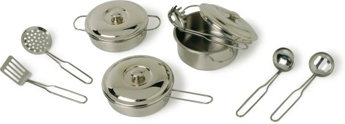 Vařte ve své kuchyni jako profesionálové! Tyto kuchyňské potřeby jsou přesně navrženy pro dětské ruce, a tak si servis lahodných pokrmů strávníci zamilují. Dva hrnce s poklicemi, pánev s poklicí a pět užitečných nástrojů k servírování a přípravě zdejších i exotických pochoutek Vás jistě nadchne. Hlavní vlastnosti: sada kvalitního nádobí na vařenípodporuje fantazii a hraní rolírozvíjí sociální dovednostizlepšuje obratnost a motoriku