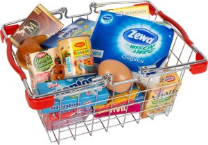 Taková záplava zboží, až oči přecházejí! Malý nákupní košík je až po okraj naplněný rozmanitými plastovými maketami známých výrobků každodenní potřeby. Skvěle doplní některý z naší pestré nabídky obchodů a zpestří nejrůznější hry na prodavače a prodavačky, nebo i starostlivé rodiče. Dovolíte nakonec dětem vzít jej s sebou i do skutečného obchodu? Roztomilý, ale odolný kovový košík je v rozích opatřen robustními plastovými chrániči pro větší bezpečnost. Výběr maket produktů dodávaných s košíkem je proměnlivý. Hlavní vlastnosti: košík naplněný různými maketami skutečných výrobkůodolné kovové provedení, opatřeno chrániči