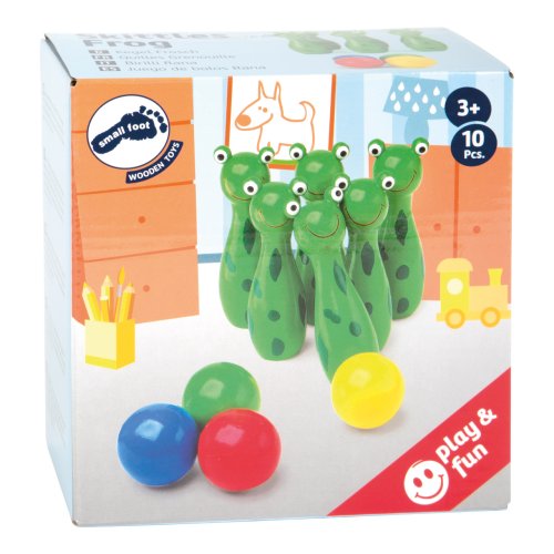 Tato malá dřevěná kuželková hra poskytuje spoustu zábavy, protože kuželky mají vzhled žabek. Obratnost a koncentraci lze snadno trénovat. Veselé žabky potěší naše nejmenší při hraní! Hlavní vlastnosti: procvičuje obratnost a koncentraciobsahuje 10 kusů - 4 koule a 6 kuželek