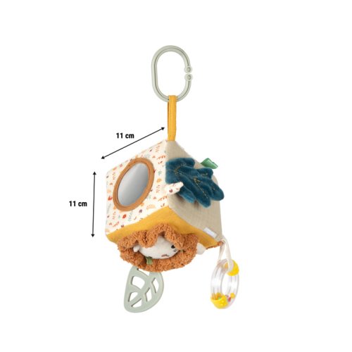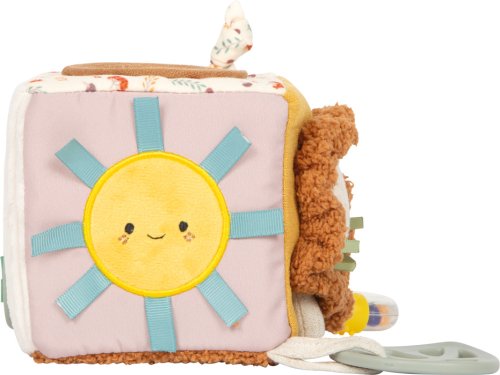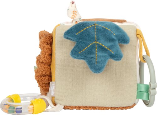 Dotýkej se, poslouchej, objevuj!Tato měkká hrací kostka je všestrannou hračkou pro miminka, která nabízí spoustu podnětů ke hře i objevování. Šusticí prvky, zabudovaný zvoneček, chrastítko i kousátko vytvářejí rozmanité zvuky a hravou formou podporují raný vývoj dítěte. Různorodé textury látek stimulují hmat, zatímco uchopování, mačkání a otáčení jednotlivých stran kostky přirozeně rozvíjí jemnou motoriku. Díky praktickému poutku lze kostku snadno připevnit na kočárek, autosedačku nebo hrazdičku, takže je vždy po ruce. Kompaktní a měkce polstrovaný tvar činí kostku bezpečnou a příjemnou na mazlení i pro ty nejmenší. Veselý motiv lvíčka, roztomilý design a harmonické barvy z ní dělají oblíbenou hračku každého miminka. Skvěle se hodí jako doplněk k dalším produktům z kolekce Little Lion a je ideálním dárkem k narození dítěte nebo ke křtu. Hlavní vlastnosti: multifunkční látková hrací kostka s veselým motivem lvíčka každá strana nabízí jiné prvky – např. zvoneček, chrastítko nebo kousátko bezpečná pro malé dětské ručičky podporuje smysly – především sluch, hmat a úchop rozvíjí jemnou motoriku hravou formou měkké a příjemné provedení ideální na mazlení praktické poutko pro snadné připevnění na kočárek, autosedačku apod. vhodná od narození