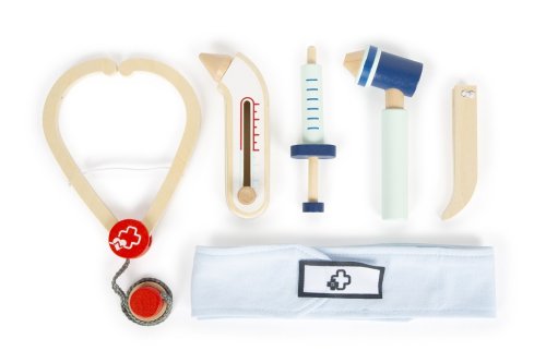 Ponořte se do vzrušujícího světa opravdové medicíny! Tato 6dílná sada má vše, co mladí lékaři potřebují. S lékařskou sadou jednoduše vyléčíte všechny nemocné plyšáky i panenky! Sada je vyrobena z robustního dřeva. Injekční stříkačka, teploměr, otoskop, pinzeta, obvaz a stetoskop nesmí chybět v žádné domácnosti malých lékařů. Tato herní sada aktivním způsobem inspiruje představivost a kreativitu mladých zdravotníků. Hlavní vlastnosti: 6dílná sadainjekce s pohyblivým pístem, otoskop se skutečnou lupou, teploměr s nastavitelným ukazatelem teploty, obvaz se suchými zipyrobustní a odolné provedení z masivního dřeva