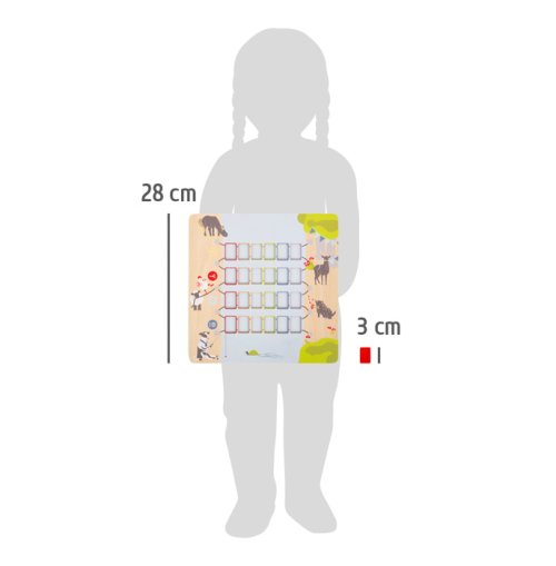 Dřevěná hra pro celou rodinu, ale speciálně pro děti! Tři varianty hry bez počítání jsou vhodné i pro mladší hráče. V balení najdete barevnou kostku a kostku se stopami zvířat, děti se tak naučí něco nového. Design v tematice „zvířátka na farmě“. Vysoce kvalitní hmatová hračka s jasně viditelným dřevem, trénuje motoriku. Uloženo v kvalitním a odolném boxu. Hodí se k dalším hrám z řady „4 Friends“. Můžete si hrát samostatně nebo ve skupině. Hlavní vlastnosti: Dřevěná logická hraTrénuje motorikuProduktová řada 4 Friends