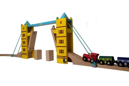 Tento dřevěný zvedací most nesmí chybět v žádné sbírce železnic. Inspirovaný londýnským Tower Bridge nadchne tento most skládací funkcí a skvělými barvami doplněnými o pohádkovou postavičku medvídka Paddington. Zvednuté koleje drží pomocí zabudovaných magnetů. Kvalitní provedení kompatibilní s dalšími značkami vláčkodráh. Vláček není součástí balení. Hlavní vlastnosti: vyrobeno z kvalitních a zodpovědně získaných přírodních materiálůodpovídá současným evropským bezpečnostním normámpodporuje představivost, obratnost a koordinaci