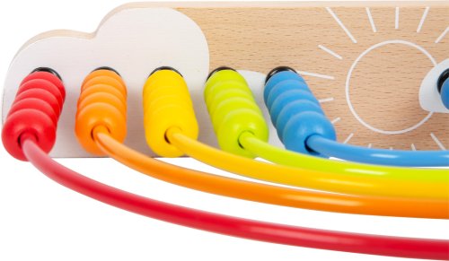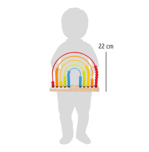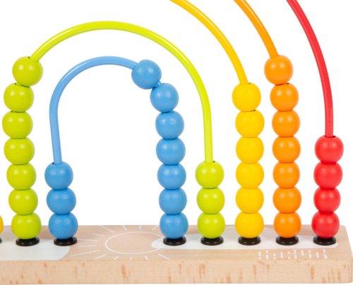 Korálkový labyrint v pestrých barvách duhy. Hračka, která je příjemná na dotyk, má atraktivní tvar a barvu. 50 barevných korálků nabádá děti ke hře a učení. Posouvání korálků trénuje klešťový úchop, motoriku, děti také porozumí počtům a množství. Stabilní dřevěná základna, 2v1 - naučná hračka i dekorace. Perfektní, pokud vlastníte i jiné hračky v duhovém stylu. Hlavní vlastnosti: Trénuje motoriku50 korálků na 5 smyčkáchPestré barvy duhy