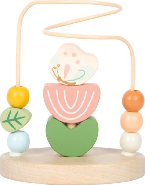 Tento kompaktní labyrint s korálky nabízí zábavnou a bezpečnou hru pro malé objevitele. Pevná kovová smyčka je osazena šesti barevnými dřevěnými prvky, které lze volně posouvat po dráze, což podporuje rozvoj úchopu, jemné motoriky a koordinace ruky a oka. V samém středu smyčky je navíc malá skládací hra, kde lze jednotlivé dřevěné prvky (včelku, motýlka, dva okvětní lístky a dva listy) skládat na sebe, čímž se rozvíjí koncentrace a obratnost dítěte.Labyrint je vyroben z kvalitního dřeva a kovu s bezpečně zaoblenými hranami a obsahuje vysoký podíl přírodního materiálu. Díky svému kompaktnímu a lehkému provedení je ideální pro hraní doma i na cestách. Tato hra spojuje hravý design s edukativními přínosy – děti se učí hravou formou zatlačovat, uchopovat, posouvat a stavět, čímž rozvíjejí své první motorické dovednosti a jemnou motoriku. Hlavní vlastnosti: kompaktní a lehká konstrukce vhodná doma i na cestáchpevná kovová smyčka s šesti barevnými dřevěnými prvky k posouváníintegrovaná skládací hra se šesti dřevěnými prvky (včelka, motýlek, 2 okvětní lístky, 2 listy)vyrobeno z kvalitního dřeva a kovu, bezpečné zaoblené hranypodporuje jemnou motoriku