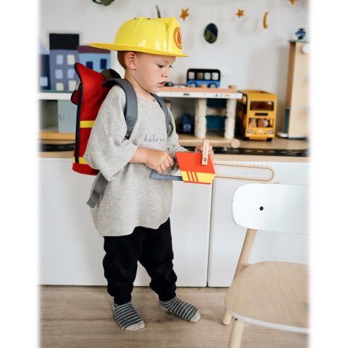 Motorová pila s hasičskou tématikou. S touto robustní motorovou pilou ze dřeva pro děti, nebude nic stát v cestě realistické hře na hasiče. Velká rukojeť je snadno uchopitelné pro dětské ruce. Pila má také natahovací startovací šňůru, se zvukem a vibracemi. Hlavní vlastnosti: z robustního dřeva s hasičskou tématikou startovací šňůra se zvukem a vibracemiperfektní doplněk pro hasičský batoh (12361)