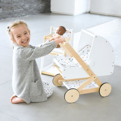 Multifunkční vysoká židlička pro panenky, která jistě nadchne mladší i starší „rodiče“ panenek. Má jednoduchý skandinávský design, je vyrobena z kvalitních materiálů. Jen pár pohybů rukou a vysoká židle může být přeměněna v židličku se stolem. Je vhodná pro panenky a plyšáky do ~46 cm. Díky jednoduchému designu se hodí do každého interiéru. Je viditelně dřevěná a má zaoblené hrany. Hlavní vlastnosti Skandinávský designPro panenky a plyšáky do 46 cmZaoblené hrany Little Button Řada atraktivního příslušenství pro panenky Little Button nabízí pestrou paletu výrobků, od kočárku přes jídelní židličku až po skříň. Zákazníky snadno zaujmou jednotným funkčním a decentním designem využívajícím přímé linie a střídmé neutrální barvy. Díky tomu spolu mohou vytvořit ucelené harmonické soupravy, které vkusně doplní moderní interiér. Důmyslná konstrukce a kvalitní zpracování pomáhají zajistit vysokou stabilitu, bezpečnost a dlouhou životnost. Založte s jejich pomocí stylový koutek pro panenky, kde mohou Vaše děti rozvíjet svou fantazii a pečovatelské dovednosti.