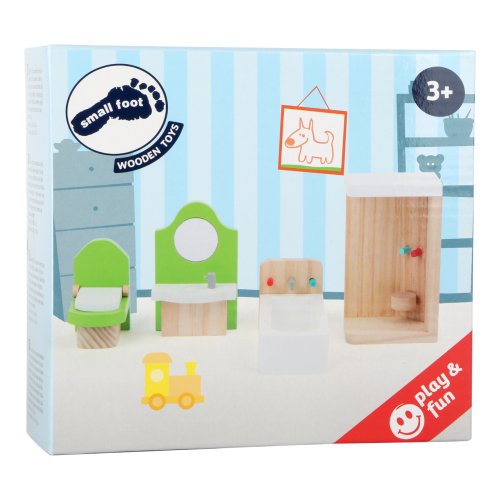 Tato 4 dílná sada vybavení do koupelny má velikost pro ohýbací panenky do 12 cm. Je vyrobena z masivního dřeva pro dlouhou životnost. Hlavní vlastnosti: při hře tato sada probouzí fantazii a procvičuje jemnou motoriku