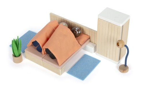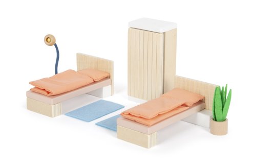 Tato ložnice je nejen krásným doplňkem pro každý domeček pro panenky, ale také motivuje děti ke kreativní hře a rozvíjí jejich představivost. Je vyrobena tak, aby co nejvíce odpovídala skutečnému nábytku. Součástí je manželské dvoulůžko, které je možné použít jako dvě samostatné postele, 2 polštáře a 2 peřiny, šatní skříň se zrcadlem, oblá lampa a 2 koberečky. Hlavní vlastnosti: moderní a elegantní nábytek do ložnicedetailní zpracovánírozvíjí fantazii a motivuje ke kreativní hře