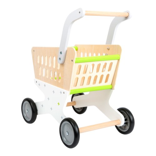 Na nákupy jedině s exkluzivním a elegantním vozíkem! Doplňte jím obchod, či stánek a nechejte své děti rozehrát fantastické hry, jejichž prostřednictvím mohou rozvíjet komunikační dovednosti. Je snadno ovladatelný a nabízí dostatek prostoru, který lze využít i k uložení hraček a vození plyšáků, nebo panenek. Jeho pryžová kolečka zajišťují tichý, kultivovaný chod na všech typech povrchů. Pevné a odolné dřevěné provedení může nabídnout dlouhou životnost a svou barevností vkusně doplní každý dětský pojíček. Výrobek vyžaduje montáž, dodáváno s obrázkovým návodem k sestavení. Hlavní vlastnosti:univerzálně využitelnýtichý, kultivovaný chodrobustní a odolné dřevěné provedení