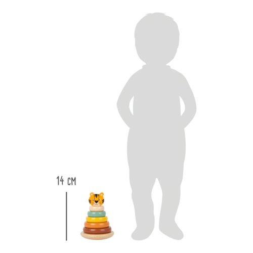 Nasazovací věž nebo rozviklaná pyramida? Obojí! Tento přátelský tygr se ukáže v plné kráse jakmile děti poskládají všechny dřevěné kroužky na sebe ve správném pořadí. Nasazovací zvířátko o 7 kusech trénuje koordinaci ruka-oko, také porozumění tvarům a velikostem. Rozviklaná věž, která je vzdělávací hračkou pro děti. Motorická hra v moderních barvách vyrobená z robustního dřeva. Hlavní vlastnosti: pastelové barvyzákladna a 6 dílů