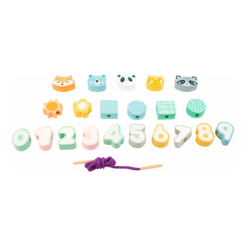 Zábavná hra se zvířaty a čísly v pastelových barvách! Cílem této hry je navléct čísla 0-9 ve správném pořadí. Dřevěné zakončení šňůrek dětem pomůže při navlékání a mohou vytvořit různé kombinace s čísly i zvířátky dle vlastní fantazie. Hlavní vlastnosti: rozvíjí pozorovací a analytické schopnostirozvíjí jemnou motoriku a koordinaci ruka-okoučí základům počítání