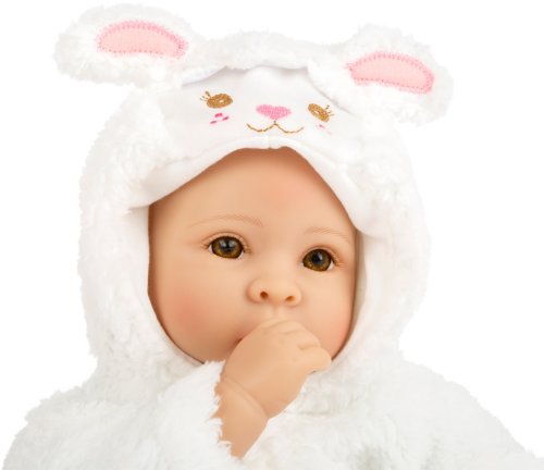 Tato roztomilá panenka si během chvilky získá srdce dětí! S útulným měkkým jednodílným oblečkem v designu ovečky je připravena do postele společně s plyšovou dekou. Hlava, nohy a ruce jsou vyrobeny z měkkého plastu. Tělo je z měkkého vyplněného přírodního materiálu a díky vzpřímené podpěře může sedět vzpřímeně. Tato okouzlující panenka by neměla chybět v žádné školce. Hlavní vlastnosti: měkké příjemné tělo panenkydetailně propracované netoxické plastové části - ruce, nohy, hlavasoučástí je plyšový obleček, deka, dudlík