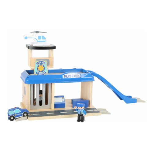 Žádný dareba už neunikne spravedlnosti! S policejní stanicí mohou děti rozehrát fantastická dobrodružství, mezi příslušenstvím je jim totiž k dispozici jak policejní autíčko a vrtulník, tak i pohyblivá figurka policisty a zločince. Stanice nabízí dvě podlaží a věž s heliportem. V přízemí naleznete celu s výsuvnou mříží a v patře lze s využitím nájezdové rampy zaparkovat. Díky kombinaci silné překližky a robustních plastových dílů může hračka nabídnout vysokou odolnost a životnost. Dřevo použité při její výrobě bylo získáno z udržitelných zdrojů a nese certifikaci FSC®. Lze ji rozšířit množstvím příslušenství a je také plně kompatibilní s vláčkodráhami jiných velkých výrobců. Hlavní vlastnosti:stanice, 2 díly interiérového vybavení, autíčko, helikoptéra a 2 figurky2 podlaží s věží, rampa a cela s výsuvnou mřížírobustní a odolné provedeníkompatibilní i s vláčkodráhami dalších výrobcůvyrobeno s použitím 100% FSC® dřeva Značka a certifikát FSC® (Forest Stewardship Council) zaručuje, že dřevo, ze kterého byl produkt vyroben, nebylo vytěženo nelegálně a pochází z lesů obhospodařovaných šetrným či přírodě blízkým způsobem, ve kterém jsou dodržovány přísné environmentální a sociální požadavky. Značka FSC® na výrobku znamená, že svým nákupem pomáháte chránit lesy a podporujete šetrné, odpovědné či přírodě blízké hospodaření, díky kterému jsou naše lesy stabilnější, zdravější, mají přirozenou druhovou skladbu a lépe odolávají negativním následkům klimatických změn.