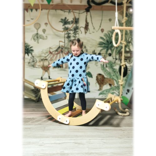 Prolézací houpačku mohu děti využít k sezení, šplhání, houpání, nebo jako domeček k prolézání. Mohou s její pomocí rozvíjet motorické dovednosti, rovnováhu či koordinaci pohybu, a lze ji tak využít i k pohybové terapii. Výšku a náklon hračky je možno individuálně přizpůsobit koncovými prvky opatřenými kolečky pro snadnou manipulaci. Skvěle doplní každý pokoj, nebo herní koutek a spolu s dalšími překážkami řady Small Foot Adventure hravě utvoří konstrukčně i barevně jednotnou gymnastickou dráhu. Je vyrobena z kombinace odolné překližky a masivního dřeva. Výrobek vyžaduje montáž, dodáváno s detailním návodem k sestavení. Hlavní vlastnosti:multifunkční, k houpání i prolézánínastavitelná výška a náklonodolné dřevěné provedenínosnost max. 50 kg