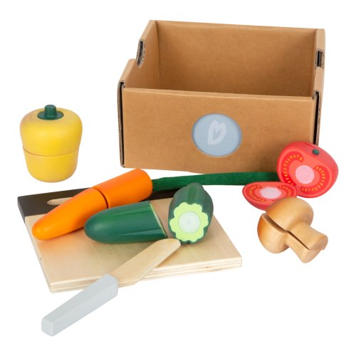 S touto sadou krájecí zeleniny z robustního dřeva si mohou děti hrát na šéfkuchaře! Skládá se z běžné zeleniny, kterou děti bez problému poznají. V balení prkénko na krájení, dřevěný nůž, znovupoužitelný obal, který lze použít k úschově hračky. Na jednu stranu prkénka lze psát křídou, zapište si nákupní seznam nebo recept.Je opravdu důležité naučit se správnou techniku krájení, s touto hračkou to půjde jako po másle. Paprika, žampion, rajče, okurka a mrkev – v této sadě je vše! Přirozeně vypadající a detailní zelenina drží dohromady pomocí suchého zipu. Díky udržitelnému obalu se děti naučí něco nového o ekologii. Krájecí prkénko lze díky oka pověsit. Hlavní vlastnosti: krájecí zelenina z robustního dřevapřírodní vzhled a natištěné detailyobsáhlá sada s prkénkem, nožem, paprikou, žampionem, rajčetem, okurkou a mrkvízabaleno v znovupoužitelném obalu, děti se při hře naučí něco nového o ekologiina jednu stranu prkénka lze psát křídou
