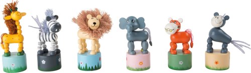 Sada 6 ks. Ti se ale hýbou! Při zmáčknutí tlačítka vespod podstavce tato africká zvířata ožijí. Hýbou se opravdu vtipně. Krásný dárek pro děti. Hlavní vlastnosti: žirafa, zebra, lev, slon a jejich přátelépestrobarevný design