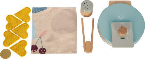 Dali byste si vafle? Se sadou na přípravu vaflí s bohatým příslušenstívm to nebude žádný problém. Váš malý kuchař nebo kuchařka mohou připravit najednou až pět vaflí ve tvaru srdce. Jsou vyrobeny z látky, uprostřed spojeny suchým zipem a vypadají jako opravdové. Při otáčení knoflíku na vaflovači se barva kontrolky mění z červené na zelenou a kuchař tak pozná, jestli už jsou vafle správně propečené. Součástí sady je látkový ubrousek, kleště a cukřenka na posypání vaflí, která při sypání vydává štěrkavý zvuk. Hlavní vlastnosti: vhodné do dětské kuchyňkypodporuje kreativní a nápadité hraní plné fantazietrénuje sociální dovednostimoderní barvy ve skandinávském stylu
