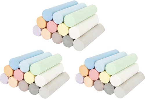 Sada kříd pro kreslení na chodník, tabuli, nebo i zeď. Široká paleta pestrých barev dětem umožní vytvářet poutavá umělecká díla. Křídy jsou velikostí přizpůsobeny dětským ručkám, zároveň však mají silný průřez, snadno se tak drží a nelámou se. Hlavní vlastnosti: 36 kříd celkem (3 balení, v každém 12 kříd různých barev)praktický tvar a velikost