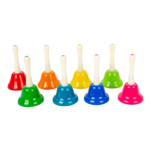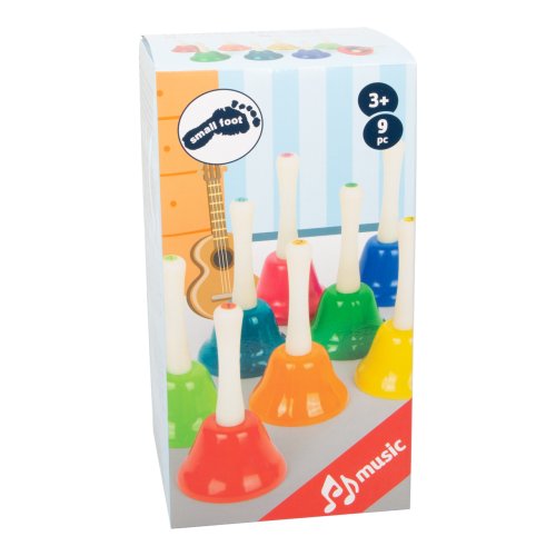 Toto je něco pro vaše uši! Těchto osm zvonečků nerozlišuje jen barva, ale také zvuk. Každý z nich je naladěn na jinou notu – C, D, E, F, G, A, H, C. V balení naleznete také noty s různými skladbami pro začátečníky a malé děti – noty jsou zaznačeny i barevně. Hudební set podporuje u dětí rozvoj rytmu, hudebního sluchu a také koordinace ruka-oko. V notách najdete písničky jako „Strýček Donald farmu měl“, „Rolničky“, „Třpyť se, hvězdičko“. Perfektní také do školek, prvních stupňů základních škol. Hlavní vlastnosti: jasné, výrazné barvy8 zvonků