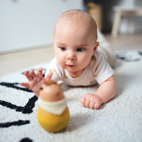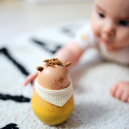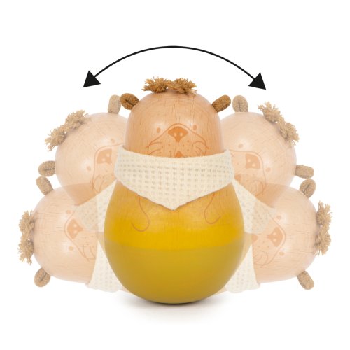 Tuto hračku si zamilujete! Roztomilá vydra v přírodních barvách bude vaše děti fascinovat. Je to senzorická hračka, která vydává zvuk díky integrované rolničce, při postrčení se také sama opět postaví. Srst na hlavě a uši jsou bavlněné, šátek kolem krku je z vzorované žerzeje, děti zapojí kromě sluchu i hmat.Krásný dárek pro novorozence. Mix materiálů, přírodního dřeva, bavlny a žerzeje dělá tuto hračku opravdovým hitem. Hračka je lakovaná, zaoblená a hebká na dotyk. Lze ji jednoduše uchopit. Hlavní vlastnosti: dřevěná senzorická hračka v motivu vydrykyvadlová hračka se při postrčení sama zpět postavírolnička uvnitř vydry stimuluje sluchhladká hračka z robustního dřeva s bavlněnými detailypřírodní barvy a mnoho viditelného dřevaideální dárek pro novorozence