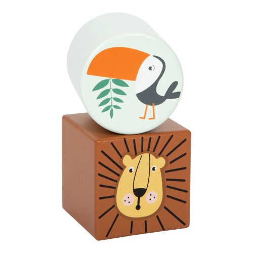 Obklopte se džunglí tvarů, barev a zvuků! Každá z kostek nabízí originální atrakci, která podněcuje dětskou zvědavost. Část sady je interaktivní, můžete se tak například podívat na svět složeným okem, či zrcátkem, nebo si hrát s rolničkami a chrastítky. Rozmanitými tvary, příjemnými odstíny a motivy divokých zvířátek mohou kostky dopomoci stimulovat představivost k roztodivným stavbám, nebo i příběhům. Jsou dřevěné, odolné a svou velikostí přizpůsobené ručkám nejmenších. Hlavní vlastnosti: 12 kostekzrakové, sluchové a hmatové atrakceodolné dřevěné provedení
