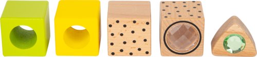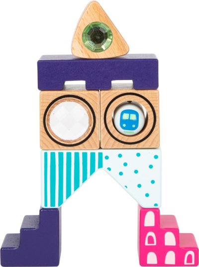 Ideální pro stavění, stohování, ukládání a objevování! Fantasy kostky ze dřeva určitě nadchnou i ty nejmenší děti. Vzrušující vizuální a haptické efekty, chrastítka, hranoly, pestré barvy a tvary, kamínky a jedoucí vlak stimulují smysly a zajišťují dlouhotrvající zábavu. Při skládání si drobní stavitelé procvičují koordinaci pohybů a jemnou motoriku, přičemž vznikají nejnápaditější umělecká díla. Ideální pro kombinaci s přírodními dřevěnými kostkami! Vysoce kvalitní zpracování, snadné uchopení a ideální pro dětské ruce. V pevném dárkovém balení mohou být kostky uloženy bezpečně! S těmito speciálními, smyslově stimulujícími stavebními kostkami září dětské oči radostí! Hlavní vlastnosti: Senzoorické kostky stimulující smyslyPoutavé barvya tvary kostek