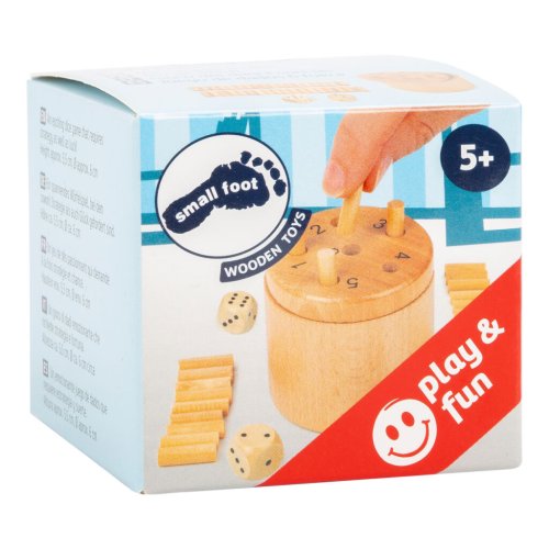Vzrušující hra s kostkami, která vyžaduje strategii i štěstí! Tato klasická dřevěná hra je vhodná pro dva až šest hráčů a lze ji hrát ve dvou variantách. Cílem je zbavit se všech vašich tyčinek jejich umístěním do správných otvorů, podle toho, jaké číslo padne na kostce. A tady je něco obzvláště praktického: přidáním druhé kostky lze tuto společenskou hru rozšířit na druhou variantu, která vyžaduje strategické myšlení v každém herním kole. Po dokončení hry lze herní plochu jednoduše použít jako úložný box. Kdo má největší štěstí při hodu kostkou? Hlavní vlastnosti: vhodné pro 2 až 6 hráčůmožné hrát ve dvou variantách přidáním druhé kostkypraktické balení - dřevěný boxprocvičuje strategické myšlení