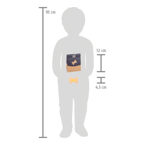 Děti milují těstoviny! Dřevěné farfalle se budou hodit do každého prodejního stánku nebo dětské kuchyňky. V pevném obalu z přírodního kartonu je jich 12, jsou vyrobeny z pevného dřeva. Praktické a edukativní, obrázkový návod k přípravě je na zadní straně balení, porozumí mu i nejmenší děti. Jak použijí tuto představivou hračku vaše děti? Uvaří oběd nebo těstoviny prodají v obchodě? Hračka dětem nabídne dlouhotrvající zábavu hlavně v kombinaci s ostatními produkty z řady „Fresh“. Hlavní vlastnosti: dvanáct robustních těstovin farfalleideální doplněk dětských prodejních stánků a kuchynízabaleny v neošetřeném kartonukrabičku lze jednoduše otevřít i znovu zavřítkompatibilní s dalšími produkty z řady „Fresh“
