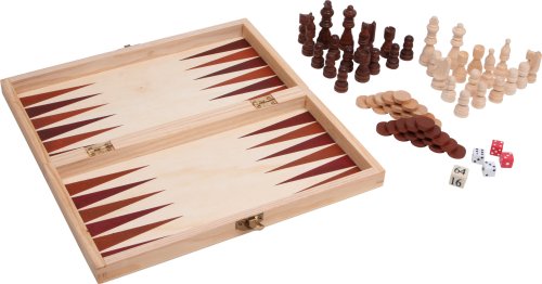 Soubor her pro celou rodinu se třemi klasickými společenskými hrami jako šachy, dáma nebo vrhcáby. Dřevěná "truhlička" zároveň slouží jako hrací deska (jak zvenčí, tak zevnitř). Perfektní řešení pro líné deštivé odpoledne! Hlavní vlastnosti: dlouhotrvající zábavarozvíjí logické myšlení a soustředěnostpro všechny věkové kategorie (nad 6 let)
